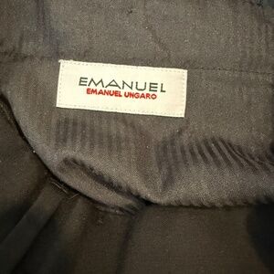 The EMANUEL Emanuel Ungaro Men's 100% Wool Dress Pants in black are a stylish and sophisticated addition to any man's wardrobe. With a waist size of 32 inches and an inseam of 30 inches, these pants offer a classic fit for a regular size man. Made from high-quality wool and featuring a solid pattern, these pants are perfect for formal occasions or professional settings. The slash pockets add a touch of practicality, while the designer brand name ensures top quality and timeless style. Pants are in excellent, pre-loved condition; inside of waist band has slight wear.