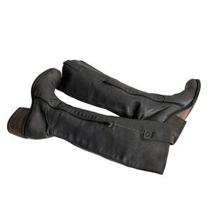 Emanuela Passeri is a female owned and operated company in Italy, run by the three Passeri sisters. The company has been around since 1956, founded by father Luciano. Italian made leather is known to be the finest, and these boots are no exception. Very soft and subtle. Simple yet classic design, featuring a block, stacked heel, and a side zipper that does not go all the way to the top. A versatile, gray color with slight color variations. This is most likely by design though some fading may have occurred overt time. Rounded almond toe 2” heel. 15” from top of heel to top, measured at the back of the boot. Gently worn with no major flaws.