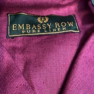 Embassy Row Pure Linen Size 10 Plum Blazer. Two Faux Front Pockets. Great for all seasons. Beautiful fall color.