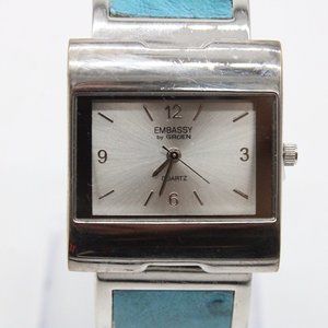 EMBASSY by GRUEN Watch Womens Silver Tone Stainless Steel Cuff Style Quartz Rare