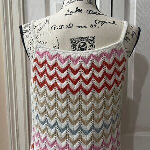 EMBELISHED CROCHET KNITTED BODYCON DRESS CAMILLE MULTICOLOR STRIPES Sz M TRENDY