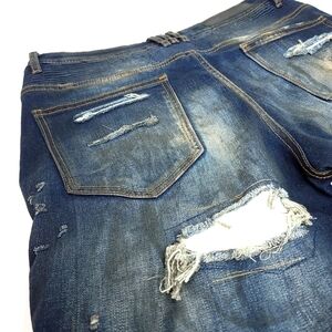 EMBELLISH Men's 34 Distressed Biker Streetwear Jeans with Paneled Stitching