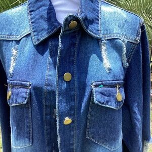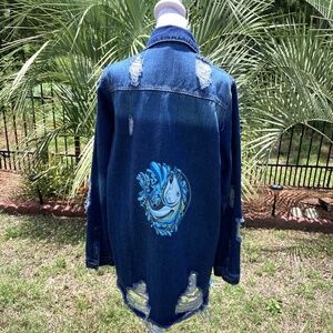 EMBELLISH TUNA FISH DISTRESSED DENIM JACKET ( Size: XXL)