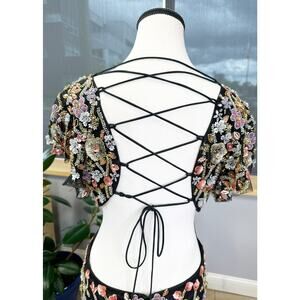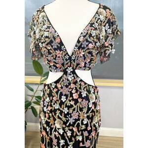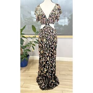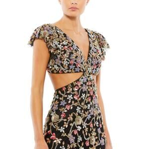 EMBELLISHED CUT OUT RUFFLED CAP SLEEVE COLUMN GOWN Style 5564 Size 12
