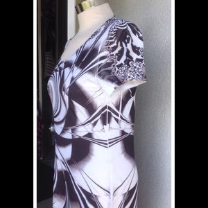 Unique. Short Sleeve Dress Medium n a Blk and Wht abstract design that is embellished with small rhinestones that make this dress exclusive. Salesman's Sample . Wore 1 time. . Stretchy