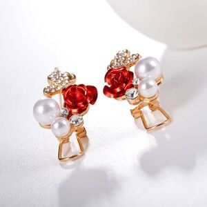 **EMBER* Gold x Red Rose Fashion Stud Earrings