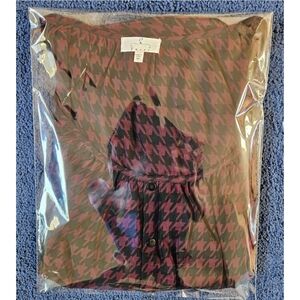 Plus Size Burgundy & black houndstooth print sheer ( See through) button & tie front blouse.