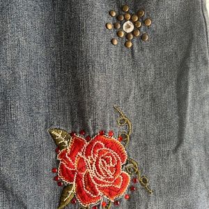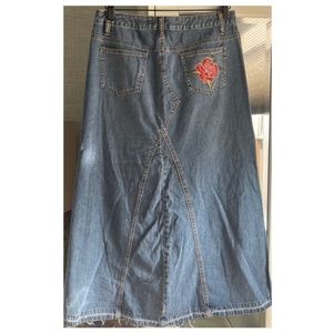 EMBROIDERED BEADED LONG DENIM FLOWING SKIRT