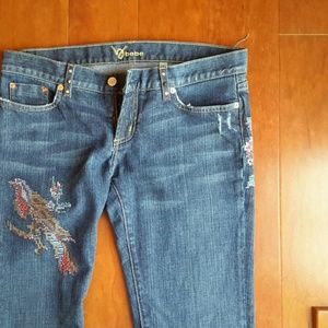 EMBROIDERED BEBE JEANS, SIZE 30