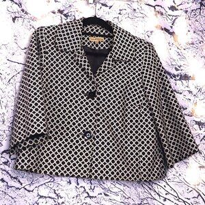 EMBROIDERED BLAZER M Notations 90s Y2K Rings Black White Office Work Boxy Spring