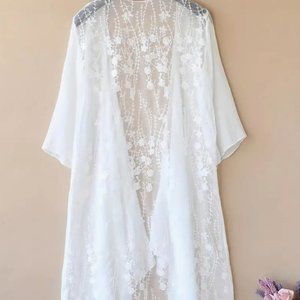 EMBROIDERED Lace White Boho Kimono Coverup OX/12 NEW