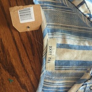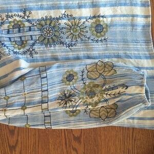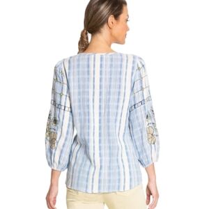 EMBROIDERED Tassel TIE NECK PEASANT TOP blue/cream stripe NWT Sz S