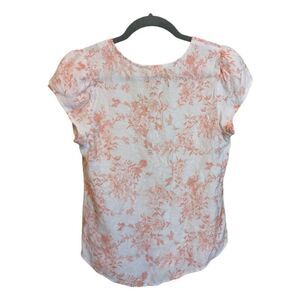 E&M Button Up Blouse with Pink Floral Print Women's Medium 60% Rayon 40% Nylon 0161