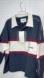 Stylish rugby shirt by EME Studios. Features navy and cream colors with maroon accents. Perfect for casual wear.