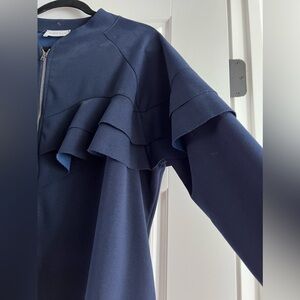 EMELIA Ruffle Bomber Jacket in Navy Women’s Size Large