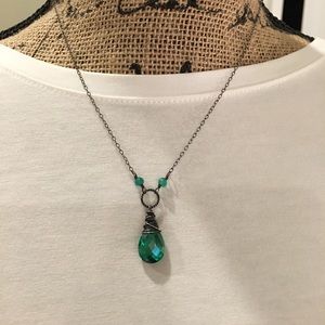 EMERALD GREEN STONE WIRE WRAPPED NECKLACE