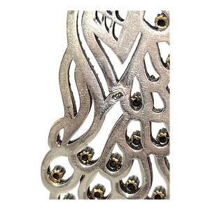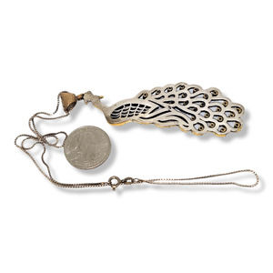 Elle Cross Ruby, Emerald, Zircon, Handcrafted Peacock Pendant, 925 Sterling Silver, Bronze Setting and Bail. 3.75"l, 1.25"w, .25h, 18" Italian Open Box Link Sterling Silver 925 Chain, Jump ring closure.