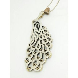 EMERALD RUBY ZIRCON PEACOCK PENDANT 925 18"