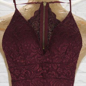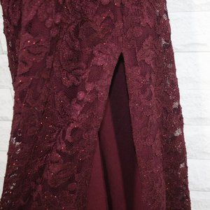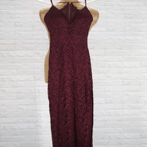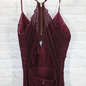 EMERALD SUNDAE Dress Gown Lace High Slit Sexy Cut Out Cocktail Prom Burgundy XXS