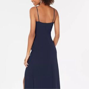A high-cut dramatic leg slit is the focal point on this show-stopping sleeveless gown from Emerald Sundae. Sophisticated in a solid shade that makes it perfect for statement accessories, the sleek and fitted stunner is detailed with a pleated side detail so the fabric drapes just right. Adjustable straps perfect the fit of the surplice neckline design. Finish the leg-baring look with standout heels or patterned tights during colder weather.