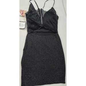 EMERALD SUNDAE SZ S black shimmer lace back bodycon mini dress NWT B59