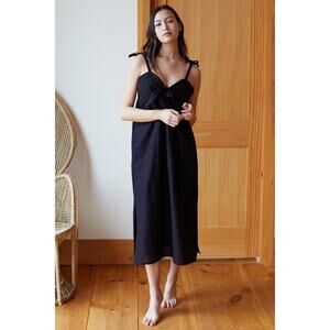 EMERSON FRY INDIA COLLECTION BLACK CAYMAN DRESS midi length organic linen sz XS