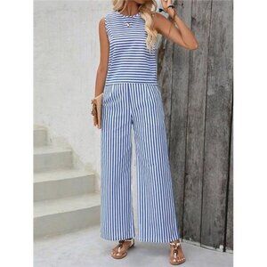 EMERY ROSE 2pcs/Set Striped Top And Pants Outfit Summer
