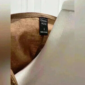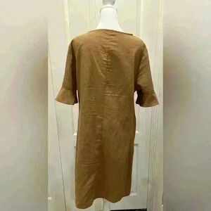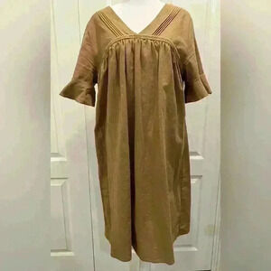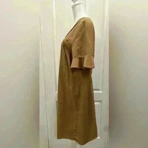 EMERY ROSE Ruffle Cuff Lace Panel Tunic Dress size large tan V-neck