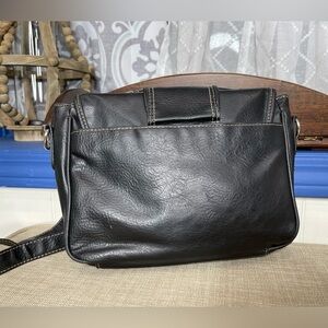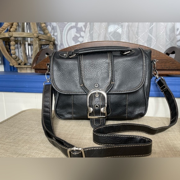 EMILIE M Women's Black Vegan Leather Buckle Accent Shoulder Bag Purse.