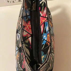 An eye-catching cutout pattern.Big enough to fit everything inside this gorgeous clutch. The color is amazing and the work they put into this bag is amazing also. Perfect for everyday use. Very clean inside. The zipper is very smooth. Very lightweight.