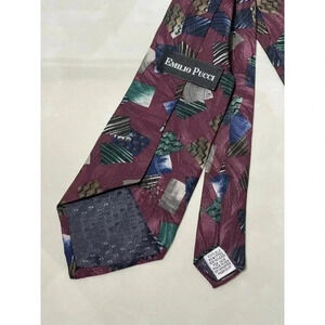 EMILIO PUCCI Mens 100% Silk Neck Tie Imported Made USA Multicolor Square Design