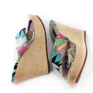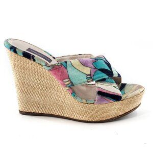 EMILIO PUCCI Multicolored Terry Platform Criss Cross Wedge Heel Sandals