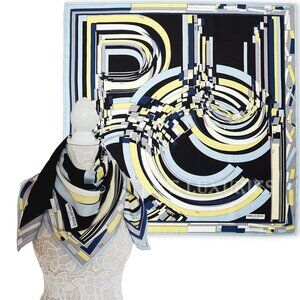 EMILIO PUCCI SCARF RIBBON LOGO PRINT SILK SIGNATURE SQUARE FOULARD 34"