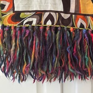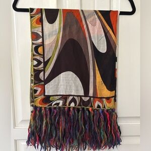 EMILIO PUCCI Silk Sheer Multi Colored Abstract Wrap w/ Fringe Detail