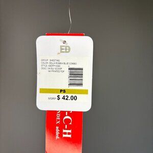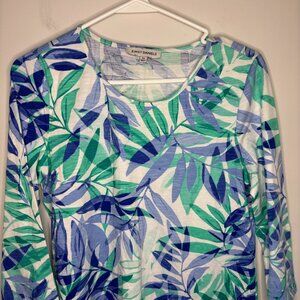EMILY DANIELS NEW Scoop Neck Printed Top Womens PS Tropical 3/4 Sleeve Stretch