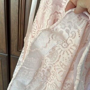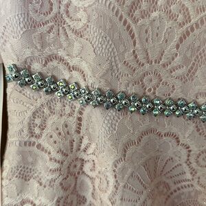 Sweet Dress! Party, wedding, holiday. Very nice, preowned condition. The outer lacy dress has sparkle. Waist embellished with crystal accents. Multiple layers at skirt. Bottom has added material to add fullness for added projection.