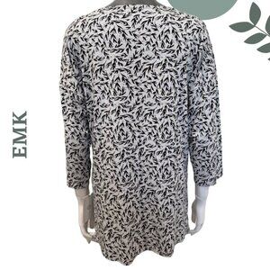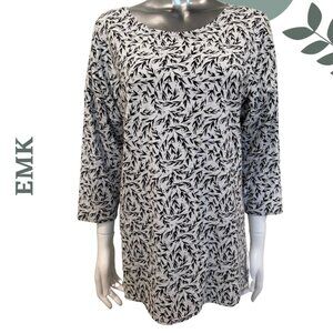 #EMK #XSStyle #LeafPrintTop #3/4Sleeve #TunicTop #CasualChic #NatureInspired #LayeringPiece #ModernBasics