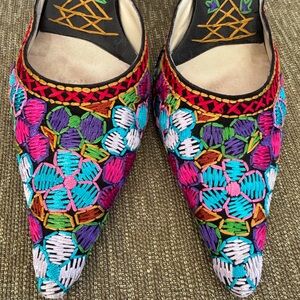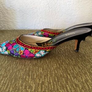 EMMA HOPE ITALY Hand Sewn Embroidered Pointed Kitten Heel Mule Shoes