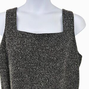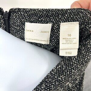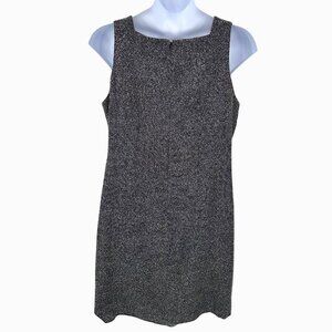 Adorable dress from Emma James - A Liz Claiborne Company! Black and white boucle material, sleeveless, squared neckline, size 16. Shell 33% polyester, 33% rayon, 27% acrylic, 7% polymide. Lining 100% polyester. Zippered/hook & eye closure in back. Excellent condition. Color(s) may vary slightly in pictures but are as close as possible.