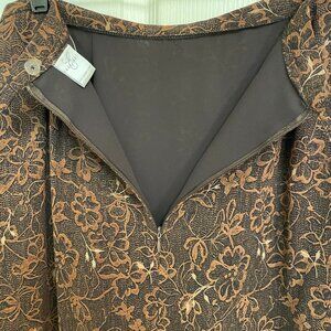Vintage Emma James by Liz Claiborne blouse and skirt. Brown floral print with a red floral border.
