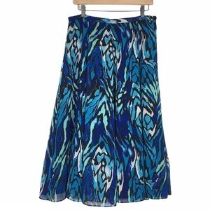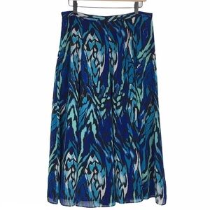 EMMA JAMES Midi Skirt Boho Gypsy Feathers Prairie Modest Flowy Peasant Tie Dye Size 8 Blue Flowy Bohemian Spring Festival Full Tie Dye Look