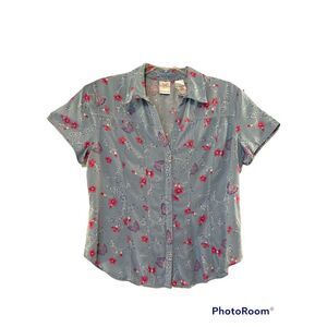 Emma James (a Liz Claiborne company) blue rayon button-down butterfly blouse size 8