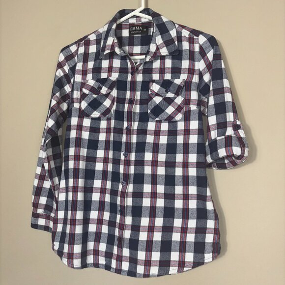 EMMA Jeans USA Navy, White, and Red Plaid Shirt - Size M
