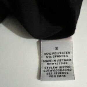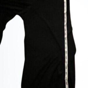 Elevate your wardrobe with this stunning black jumpsuit from Emma & Michele. The ruffle leg design with slits adds a touch of elegance to the relaxed fit jumpsuit, making it perfect for any occasion. The V-neckline and flared sleeves provide a comfortable and stylish fit, while the button closure and stretch knit material ensure a perfect fit. The jumpsuit comes with a belt that accentuates the waistline and adds a feminine touch. Ideal for anyone looking for a chic and comfortable outfit, this jumpsuit is a must-have in any fashion-forward wardrobe. This jumpsuit does stop right below the knees. Polyester and Spandex. Size Small.