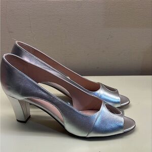 EMMA VIANI MADE IN ITALY LEATHER Silver High Heel Peep-Toe Pumps made in Italy
