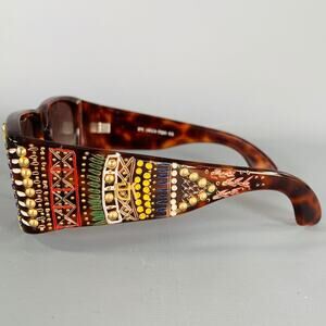 EMMANUELLE KHANH Brown Multicolour Studded Acetate Sunglasses