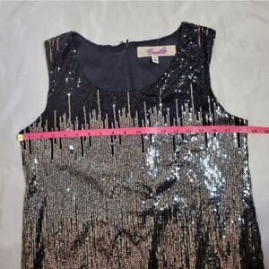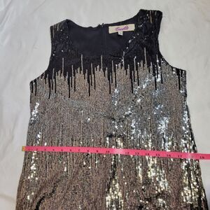 Taylor Swift style black silver and gold sleeveless sequined shift dress by Emmelee. The Life if a Showgirl or Eras stule! Wanna dress as Taylor for Halloween? This dress is perfect! Very similar to one of her Fearless dresses! Polyester.