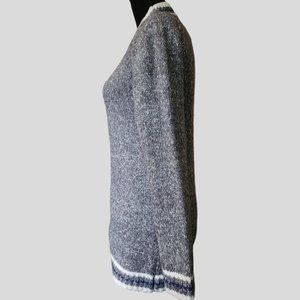 Gray Very Well made thick warm sweater. Has detailed knit trim at collar, hem and cuffs.