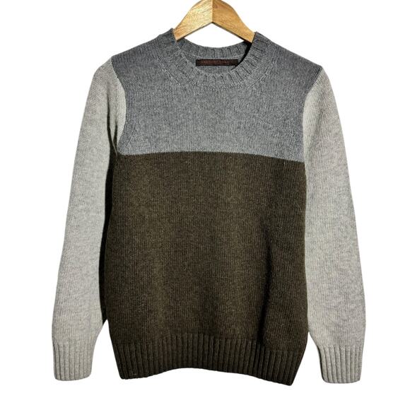 EMOZIONI UOMO Italian Wool Blend 90s Sweater Men S Block Gray Crew Neck Preppy