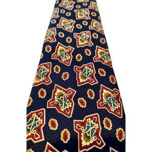 EMPIERE ARMANI Dark Blue, Red & Gold 100% Silk Paisley Inspired Tie | 58"